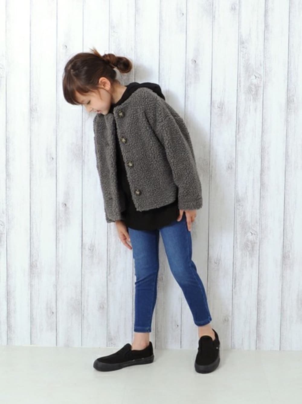 いつも見ていただき、ありがとうございます*** ♡+とても嬉しいです◎ モコモコカーデのダークカラーコーデ♡ 男の子も着れちゃうオススメコーデです☺︎ アウターは、大人気のモコモコカーディガン! モコモコボアのダークカラーで大人っぽく◎ インナーは、ゆるっとサイズのワッフルフーディー。 裾がラウンドしてて、レイヤードスタイルにも大活躍間違いなし♪ 程よい厚みで、今の季節にピッタリです! ボトムは、よく伸びーるストレッチパンツを合わせて、足元はスッキリと♡ インディゴ糸を使用し、色落ち加工しているのもポイント◎ すごーく伸びるから動き回っても楽ちん! ボトムのストレッチパンツは、カラバリ豊富で自分好みの色が見つかるはず◎ ぜひ他のカラーもチェック✔︎してみてください*** 【身長 121cm / 体重 20kg】
