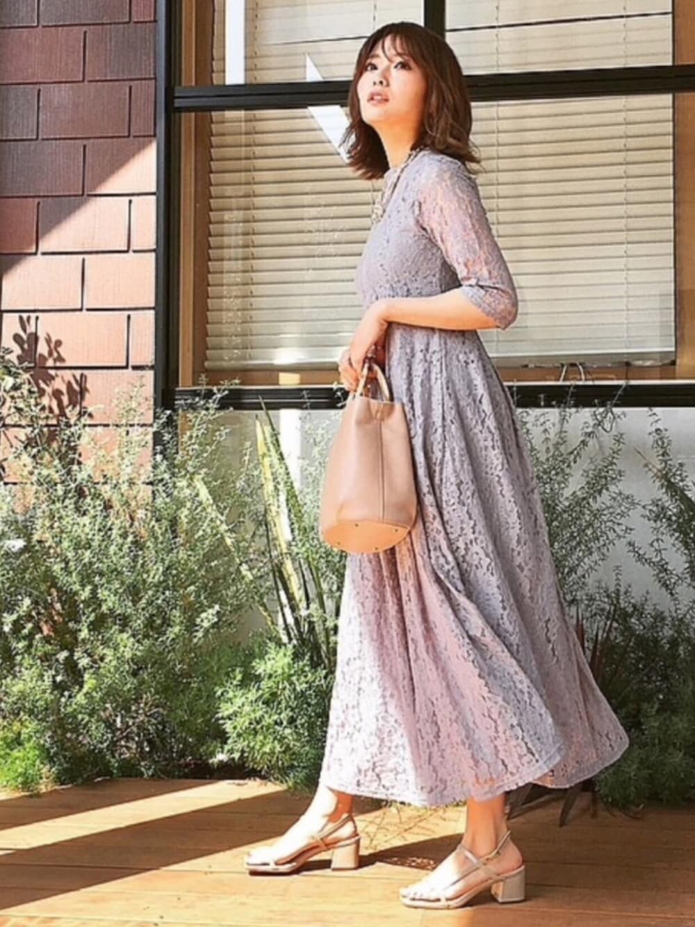 Lace Ladiesのドレス「花柄総レースハイネックマキシ丈ワンピース・ドレス」を使ったコーディネート