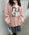 柔らかなピンク×サングラスの猫ちゃんがキュートなプルオーバー♡