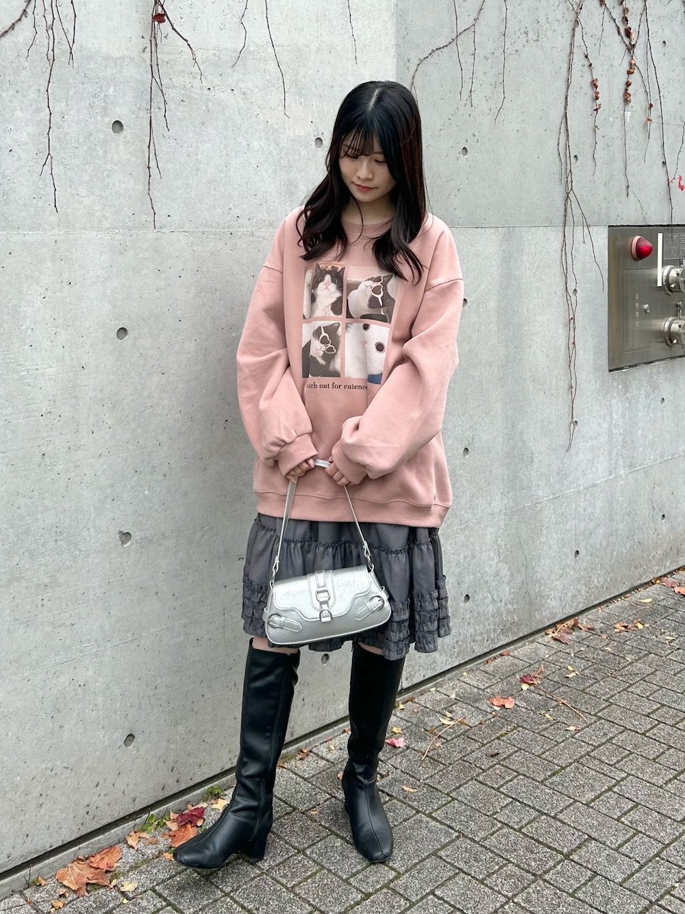 lacvert_official(LAC-VERT)のスウェット「【選べる2種類】キャットプリントスウェットプルオーバー」を使ったコーディネート