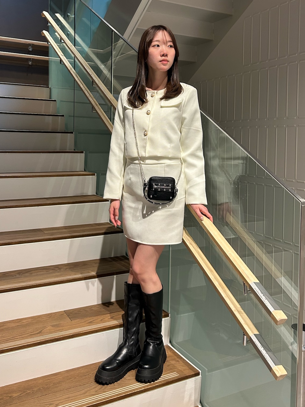 lacvert_official(LAC-VERT)のセットアップ「ツイード風ジャケット+ミニスカートセットアップ」を使ったコーディネート
