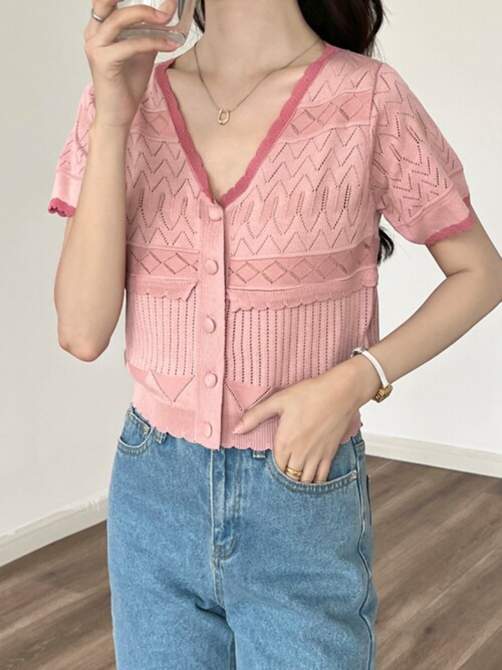デザインどこかレトロ可愛いデザインのカーディガン。 襟元と袖口に入った差し色のカラーがアクセント。 いつものコーデに取り入れるだけで華やかになる一枚です。 カーディガンとしてはもちろん、ボタンを全て閉めてトップスとして着ても◎ 伸縮性のある生地なのでストレスなく着ていただけます。 一枚でもサマになるのでコーデに悩む必要はありません。 春夏にピッタリの華やかで可愛い4色展開です。
