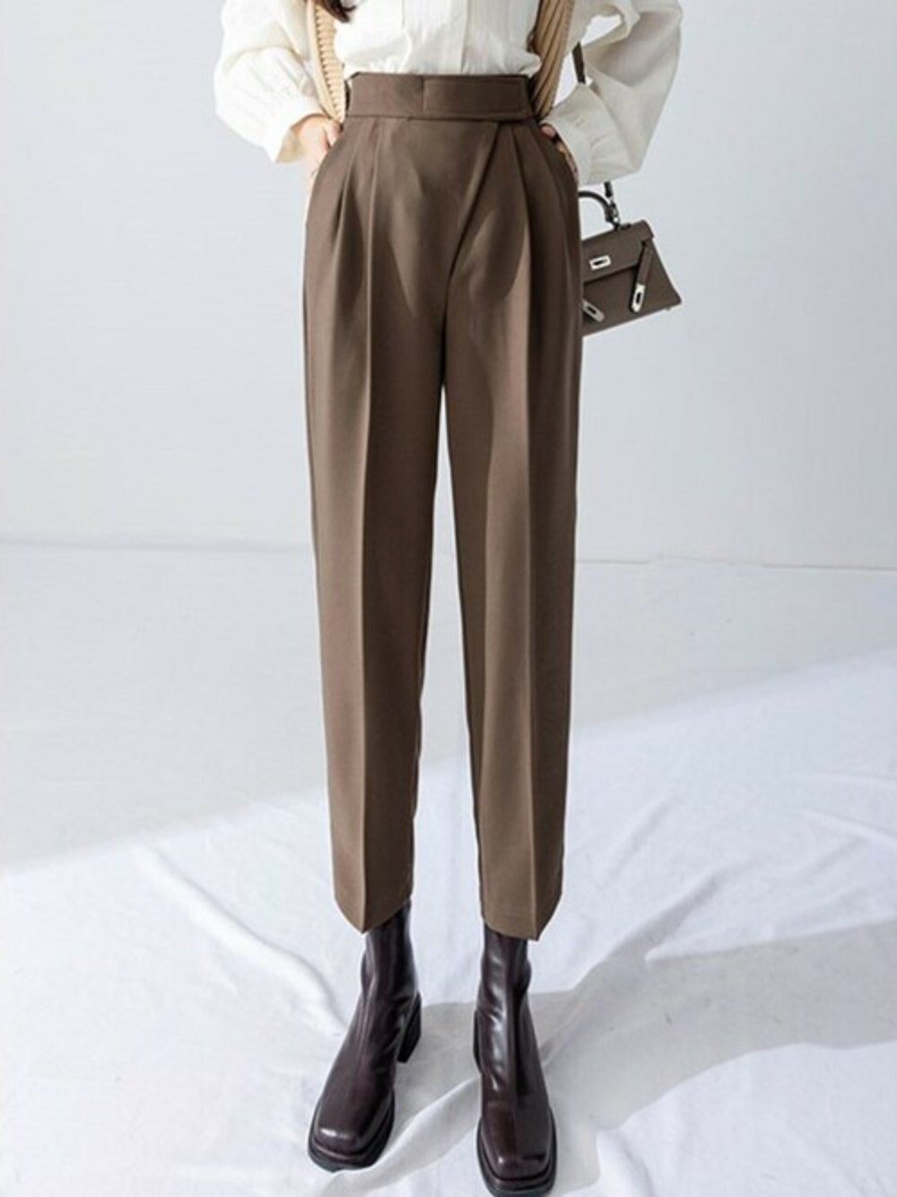 マジックテープの幅広ベルトで楽に履けるだけでなく、ハイウエストデザインで美脚効果も◎ 洗練された印象になれる綺麗めタックパンツが登場。 ボディーラインを綺麗に見せてくれるストレートシルエット。 タック入りで足を細く!ハイウエスト仕様で足長効果も抜群♪ マジックテープのウエストで着脱を簡単にするだけでなく、 ベルト無しでジャストサイズにウエストを調整出来るのが嬉しいポイント◎ デザインはシンプルなので、合わせるアイテムを選ばず着回せます。 デイリーにもお出かけにも、もちろんオフィスにも着ていただける一枚。