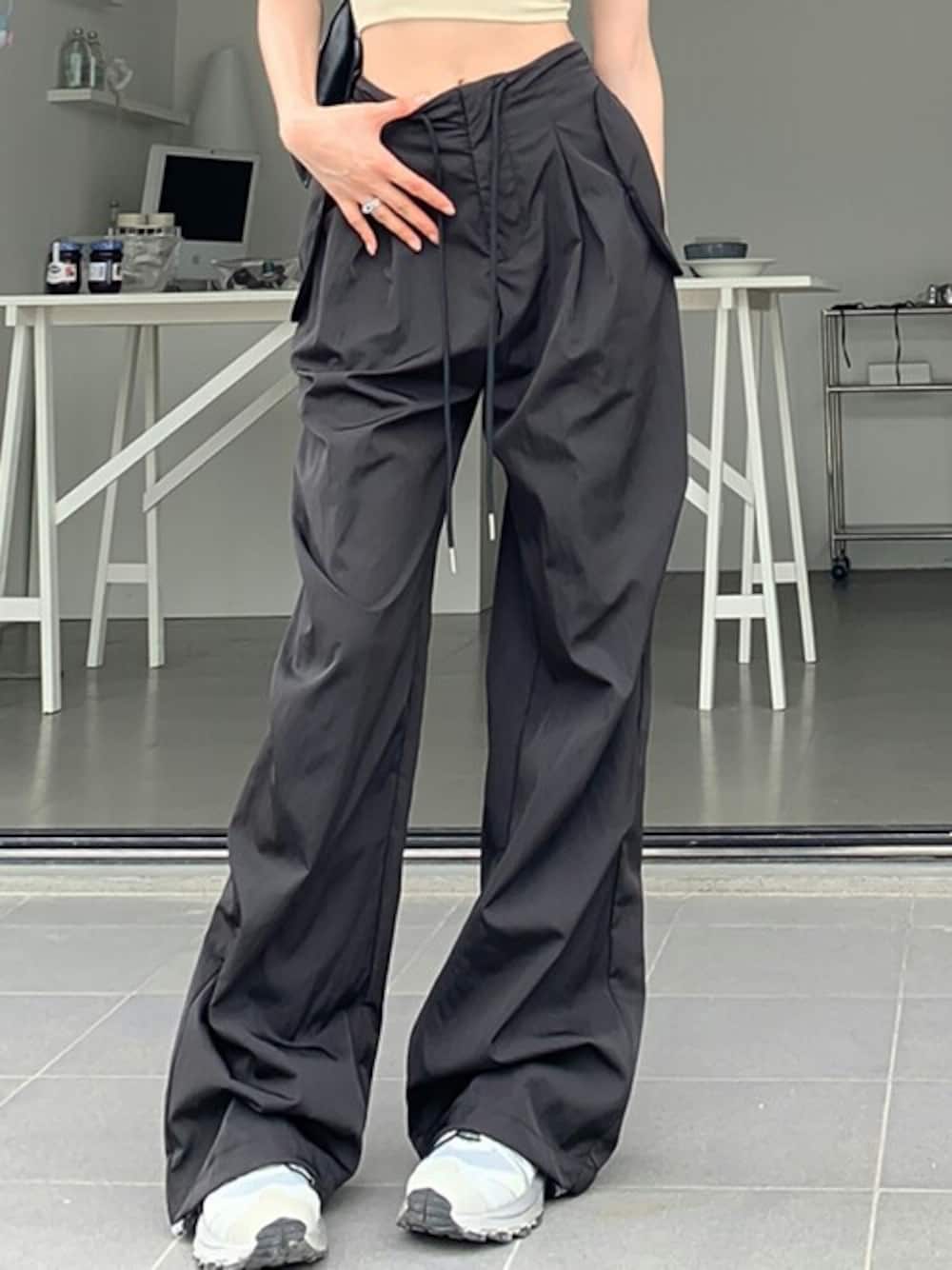 カジュアルながら綺麗めなデザインで女性らしく着回せます! 程よい太さの美シルエットで様々なトップスとも相性抜群です! シャカシャカとしたポリエステル素材で、スポーティーでかっこよくまとまります! ブラウスやシャツと合わせてもおすすめ◎ ヒールやサンダルとの相性も良く、色々なスタイルを楽しめるアイテムです!