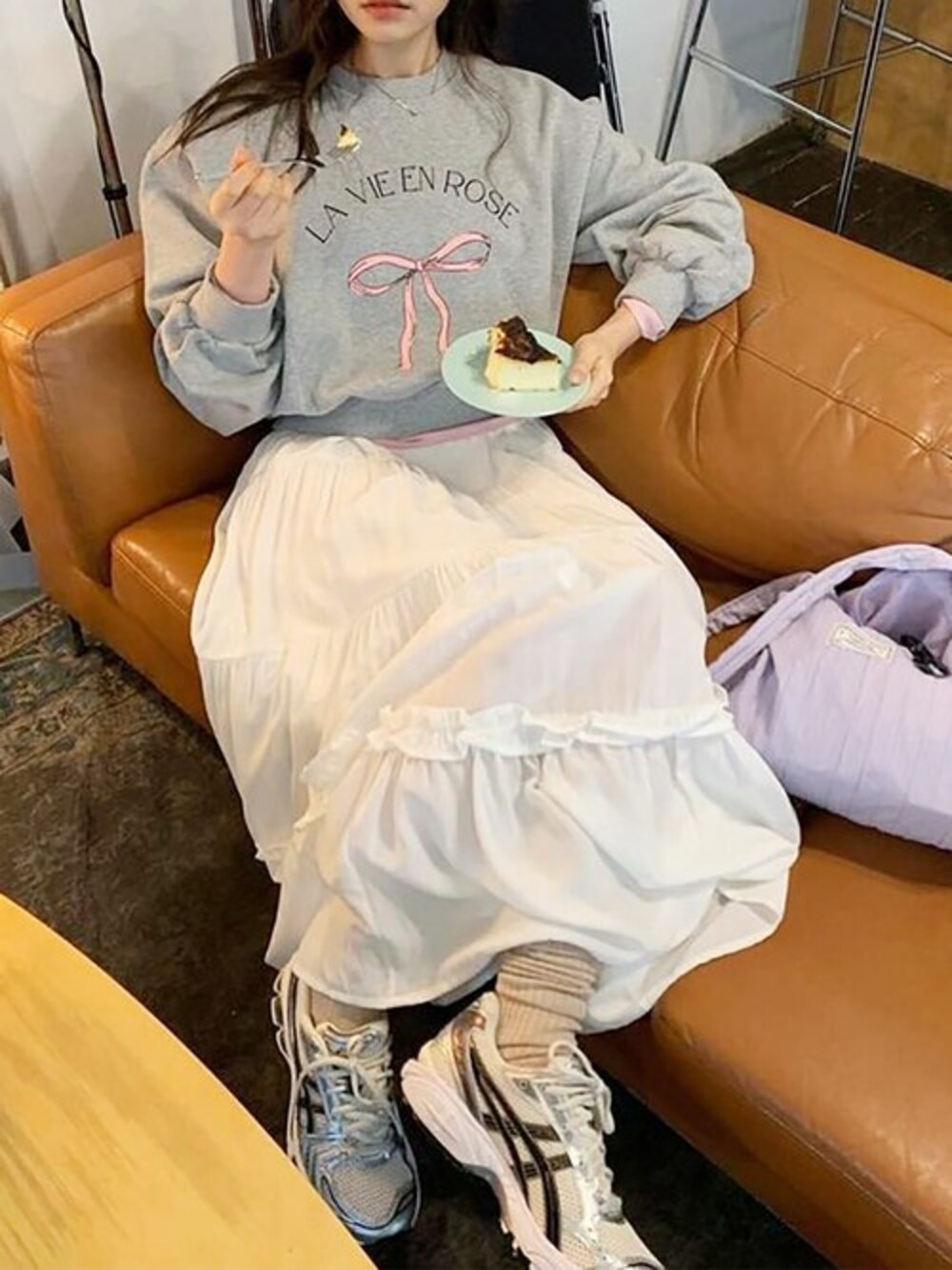 LM(LAFFMO)のスウェット「リボンプリントスウェット」を使ったコーディネート