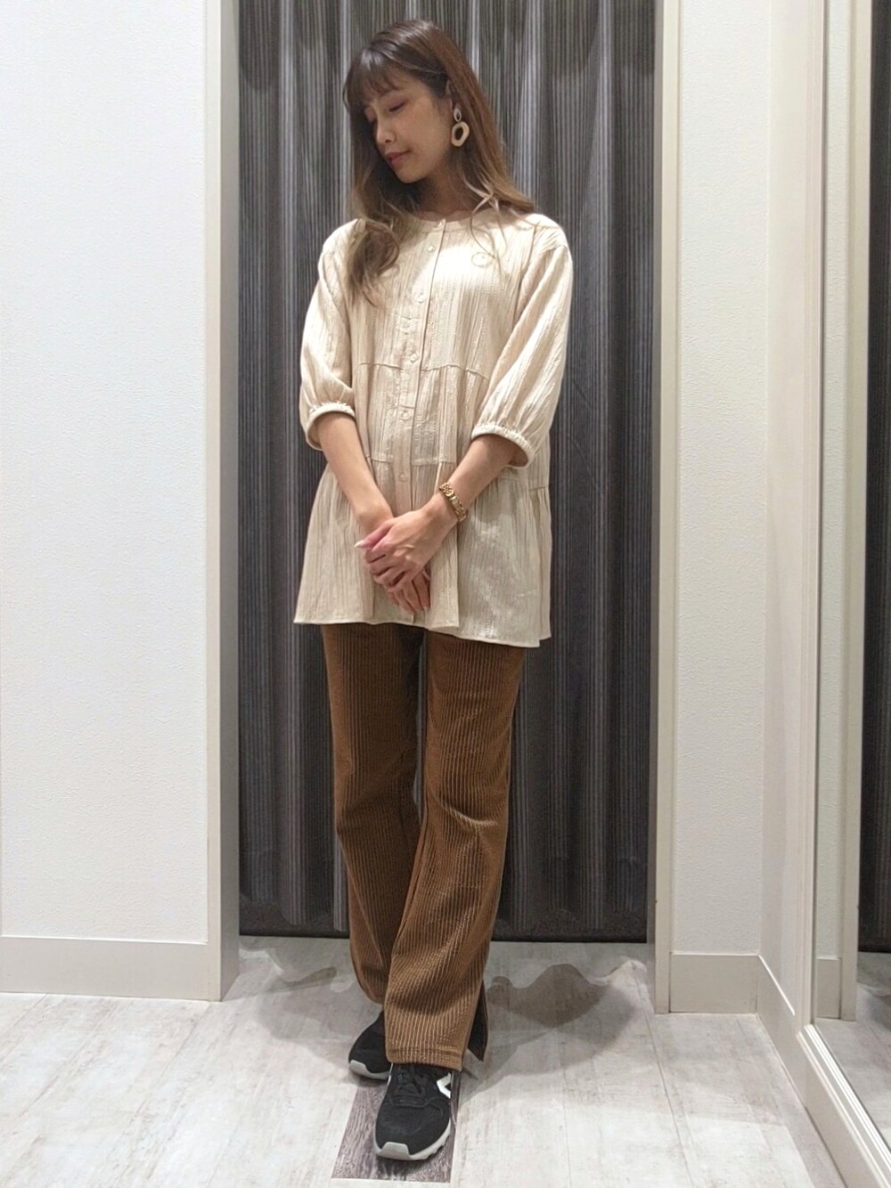 ユキのその他パンツ「ストライプカットリブパンツ」を使ったコーディネート
