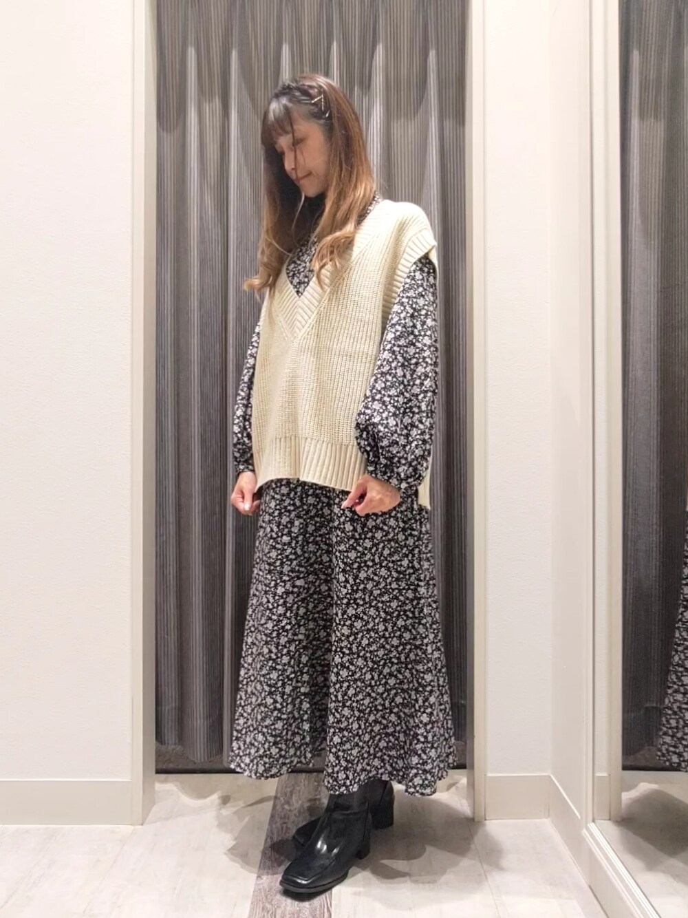 ユキのブーツ「スクエアトゥショートブーツ」を使ったコーディネート