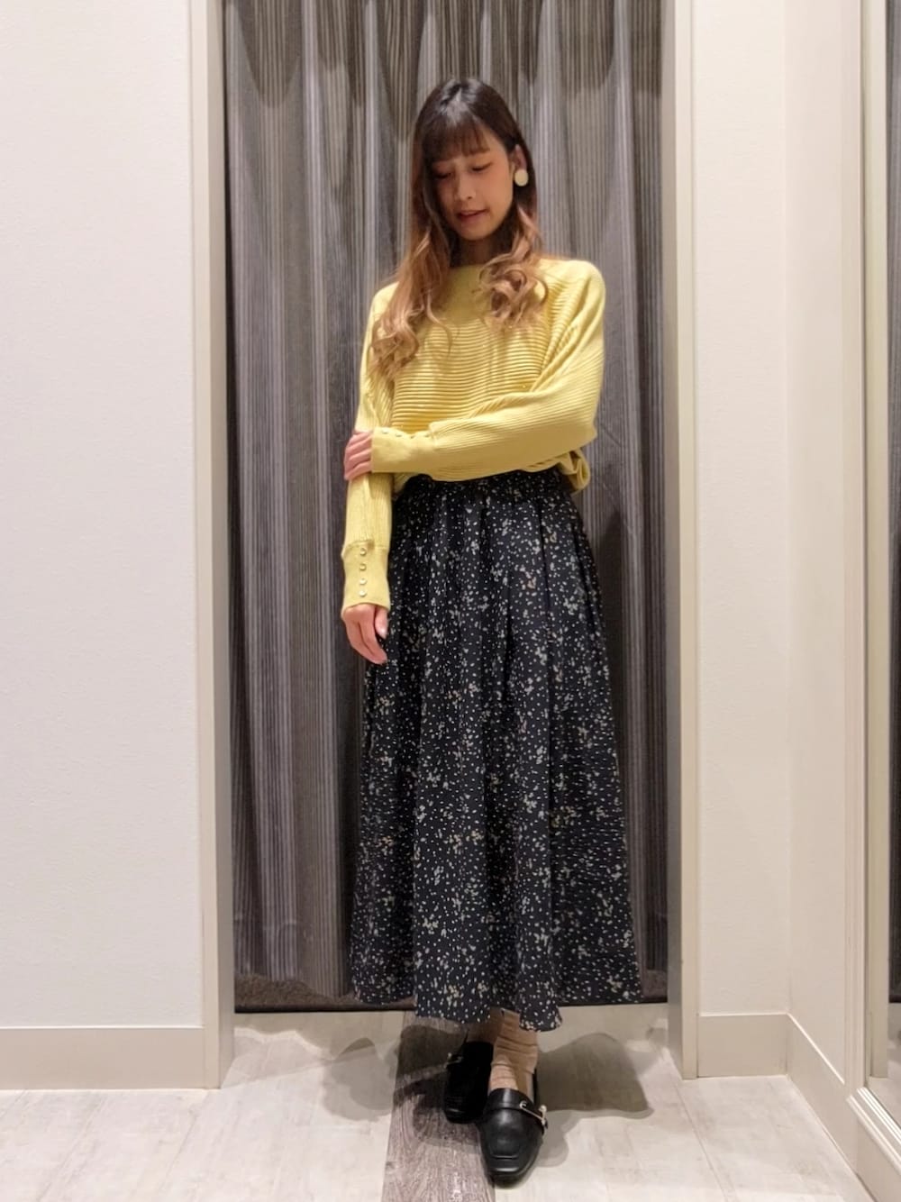ご覧頂きありがとうございます✨ トップス 横リブのドルマンニットは、ラメが入っていて可愛いです😊 洗濯機洗い可能なのも嬉しいポイント◎ スカート プリント柄がコーディネートのアクセントに! シンプルなシルエットでパーカーやなどにも合わせやすいです😊