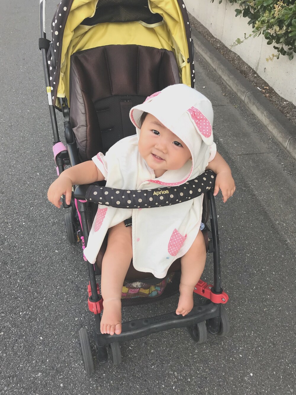 毎朝お姉ちゃんの送りに付き合わされてます😂 日差し対策