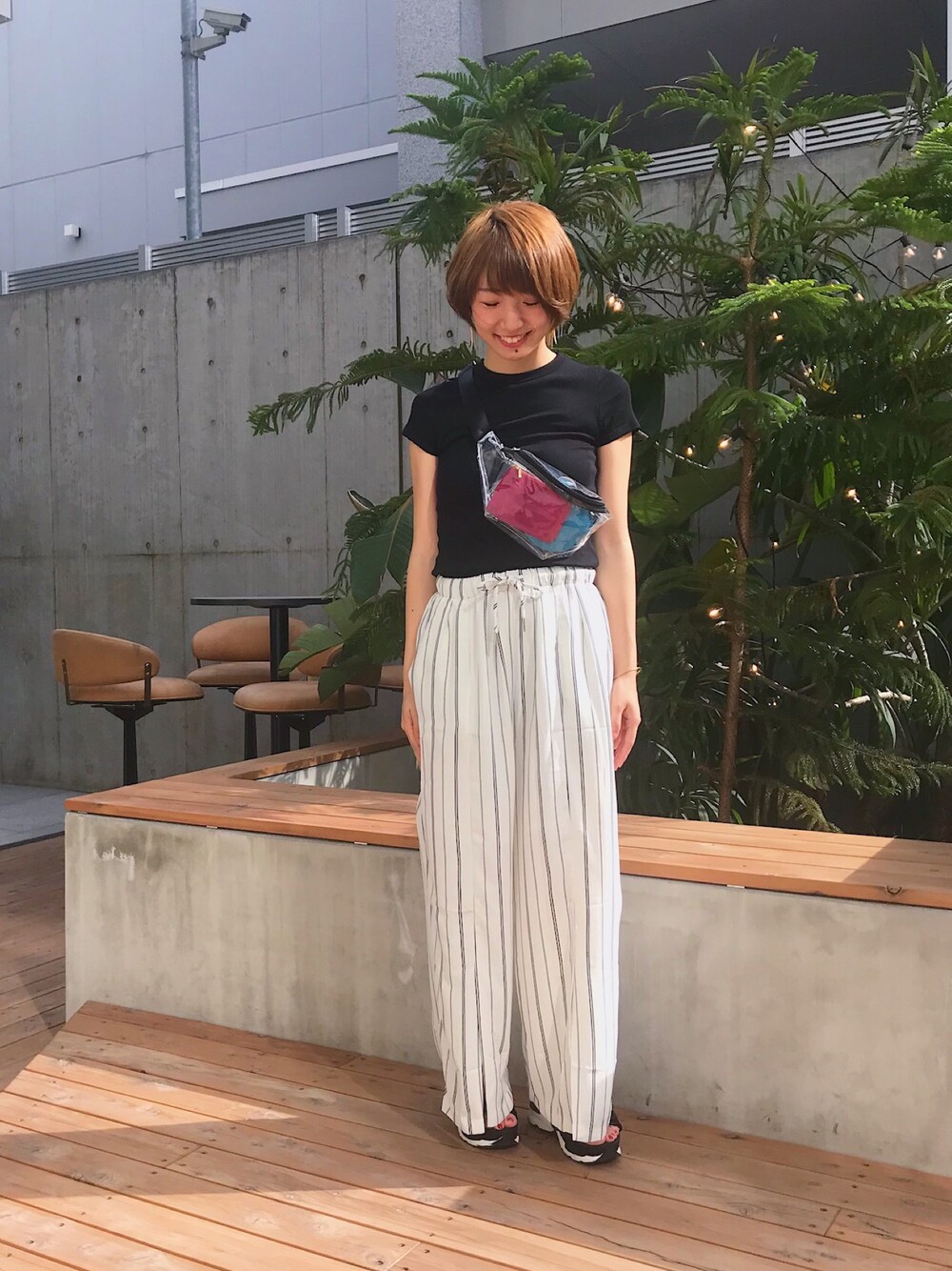 . 昨日は暑かったですね☀️ 楽チンだけどオシャレに 見えるコーデをしてみました笑っ ストライプパンツは前にスリットがはいっていてとてもお気に入り🤤💓