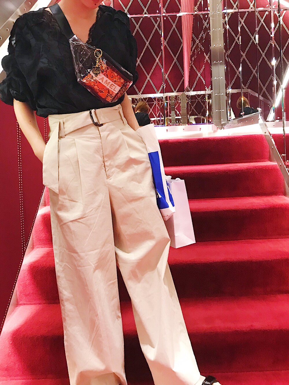 . お買い物の紙袋が 写ってしまった.....笑っ . 昨日のお出かけコーデ♡ 銀座まで行ってきました💓 やっぱり銀座ってなんかワクワクする場所だな。