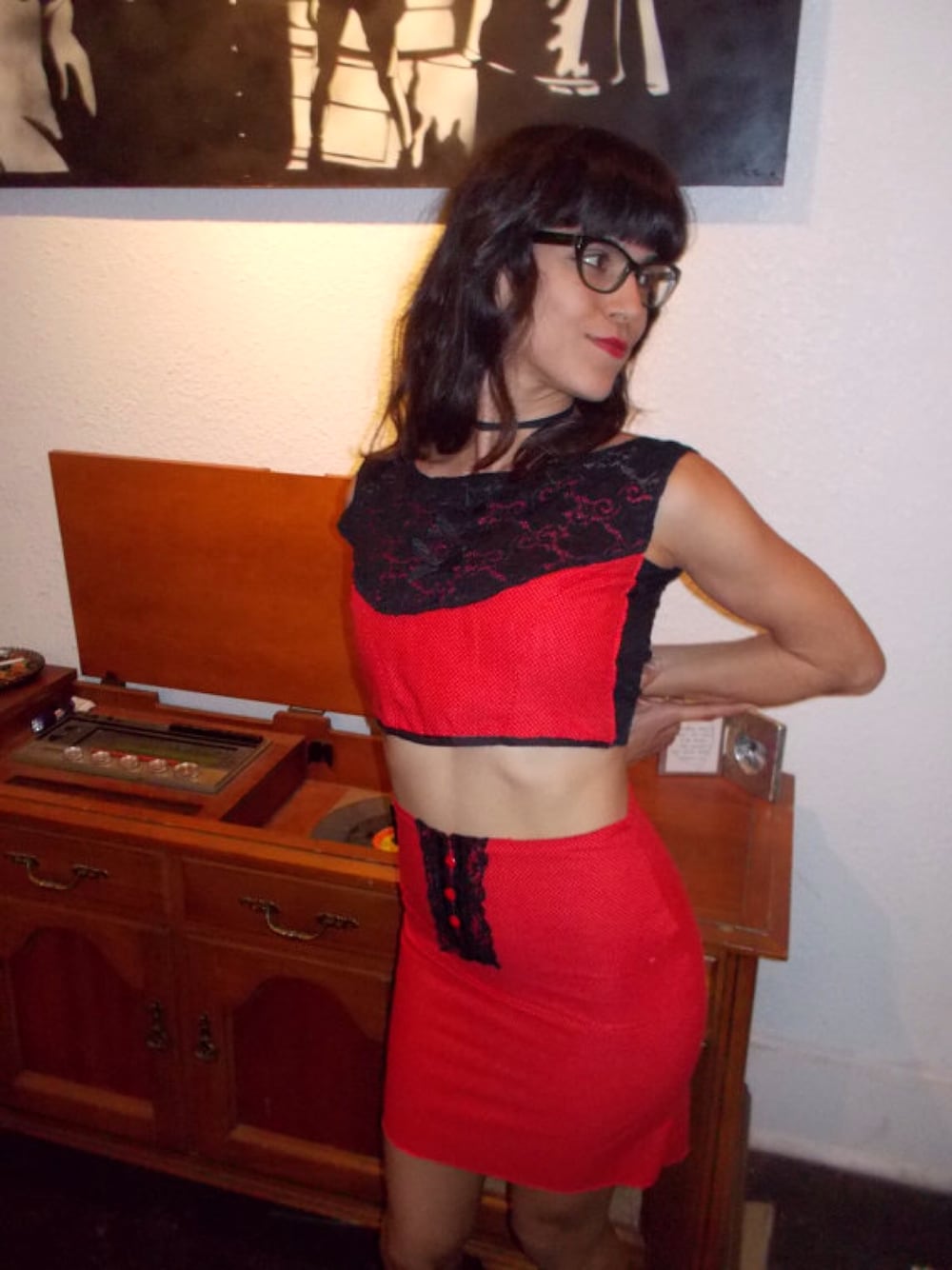 Betty page inspired red polka dot outfit I made myself last year!