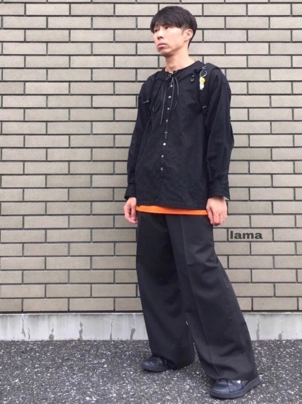 おはようございもす☻ 仕事からの帰り道、誰かの家の晩御飯の匂いでなんだか切ないきもちになりがち、lamaです☻ 観に来ていただきありがとうございもす★ やっと少し涼しい…てことで長袖☻ モード感のあるレイヤードスタイルです★ ●SHALEEF / ドローコード付きプルオーバーシャツ x UNIQLO オレンジT ●YOSHIYUKI KONISHI / ワイドストライプパンツ ●reebok / リーボッククラシック ●Patagonia / バックパック + essoくん&チーズ🧀 essoくんはバックパックのフロント部分にぶら下げ、チーズは後ろでぷら〜ん(笑)🧀 分かりづらいけど、上下ともにストライプ☻ 後はオレンジチラ見せ🍊見えないけどソックスもオレンジ🍊✨ 昨日休んだ小窓パン🍞今日は付けといたお★ では✋