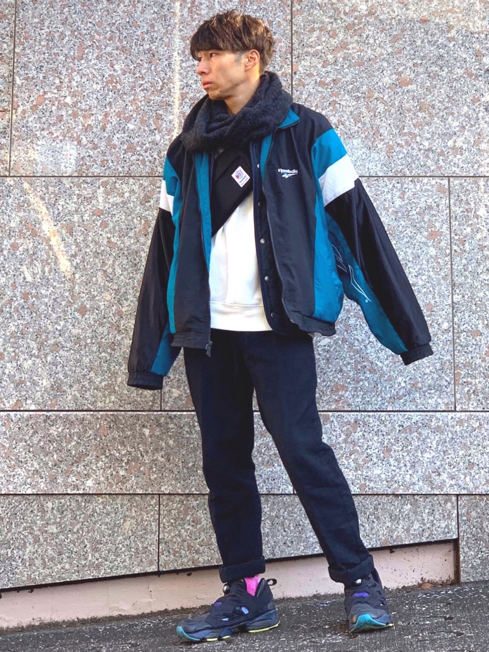 過去最高に好みのトラックジャケットをZOZO USEDで手に入れたので僕は元気です☻ lamaです☺︎ 僕は元気ですシリーズ、時々リアル元気ネタもあります(笑) ということで今日は古着のReebokを主役にしたスポーツミックス☻というかほぼスポーツです✨ 流石にアウター一枚では寒いので、またもやJohn bullのインナーダウンが活躍☻ 生地の薄いものでもアウターとして使いたい時はこういった合わせが便利★ スヌードとパンツはキレイめアイテムにし、ラフすぎない感じにまとめました✨ オリジナルポンプにはカラフルなタイダイソックスを合わせています👟🧦 ■少し前にも書きましたが、オリジナルのReebokが作れるサービス 【Your R eebok】はもうすぐ終了します!迷っている方はお早めに👟 ■ ZEPETOはじめました☻ あまりいじる時間なさそうだけど、やってる方はフォローしてくれると嬉しいです✨ → lamaコード F32MK4 ※過去コーデへのコメントは見逃すことが多いのでお控えください🙇♂️キリがないのでチェックするのやめました🙇♂️🙇♂️🙇♂️ 今日も見ていただき、ありがとうございます☺︎