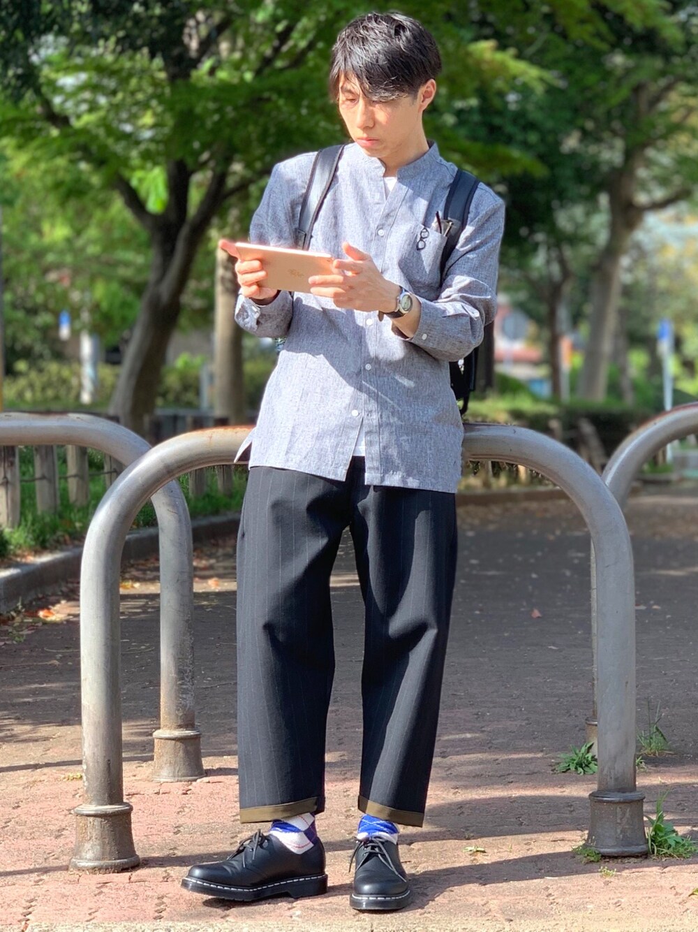 Dr.Martinはじめて履きました☺︎ lamaです☻ 今日はOAKLANDのVネックロングスリーブシャツを使ったキレイめコーデ★ まずこのシャツなんですが、シワになりにくい適度なハリ感がありながらもサラッと着れてめちゃくちゃ着心地いいのでこれからの時期にかなり使えるアイテムです^_^ プライスもお手頃価格だし、カラー展開も豊富なので春夏のワードローブに加えてみてはどうでしょうか? わりと珍しいスタンドカラーのVネックなのでコーデの幅もぐっと拡がると思いますよ✨ このコーデ、メガネかけたショットもあったんですが小窓の関係上お蔵入り👓何故かと言うとwear初出し【noon】の時計が出てなかったから… そしてそして、僕自身ですら突っ込みたくなる足元のマーチン👟スニーカーしか履かないとしてきましたが、さすがに飽きてきました(笑) このマーチン、ステッチが白なんですがアイテムタグで見つけられなかったのでステッチ黄色のモノをタグ付け☻ 今後はローテーションにマーチン加えることでもう少しコーデの幅を拡げていきます☺︎ ソックスも同じパターンのものがなかったので一番近いものをタグ付けしてます🙇♂️ はじめて着たOAKLAND。 はじめて出したnoon。 はじめて履いたDr.Martin。 はじめての撮影場所。 はじめてづくしの投稿でした☻ 長文読んでくださりありがとうございます☺︎ コメントは無理なさらず…観てもらえるだけで嬉しいです😃