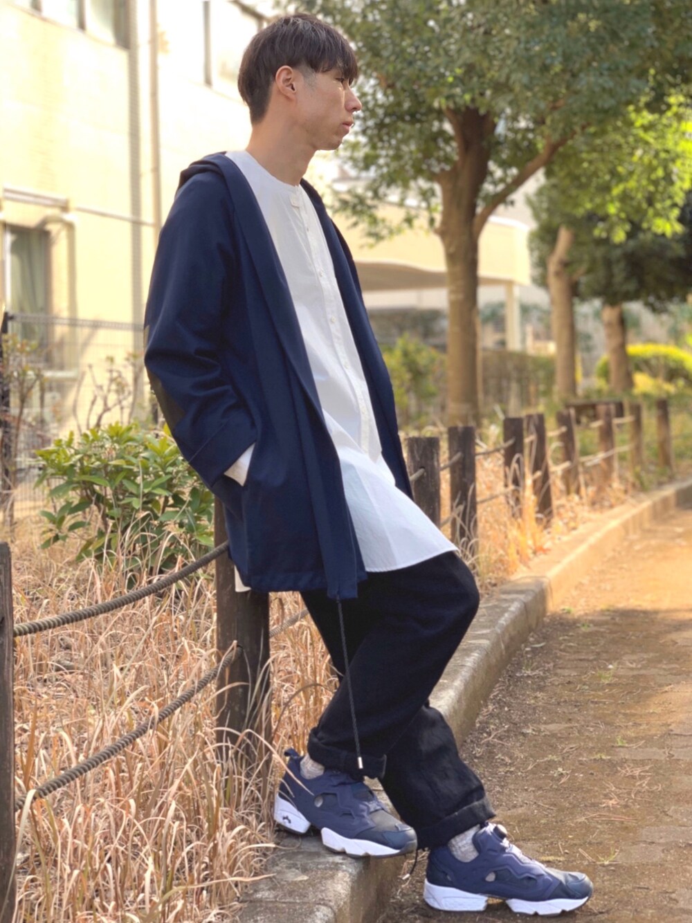 日中と朝晩の気温差が辛いですね… lamaです☺︎ 今日はジャンポールノットのビッグパーカーにロング丈のバンドカラーシャツを合わせた青白黒のシンプルコーデです☻ 座りフェス用に撮ってたボツショットでしたが、上げときます★ 今日も見てくださりありがとうございます^_^