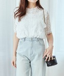 ご覧いただきありがとうございます💐 レディライクなレースデザイントップス。 程よい肌見せで涼しげで華やかな印象。
