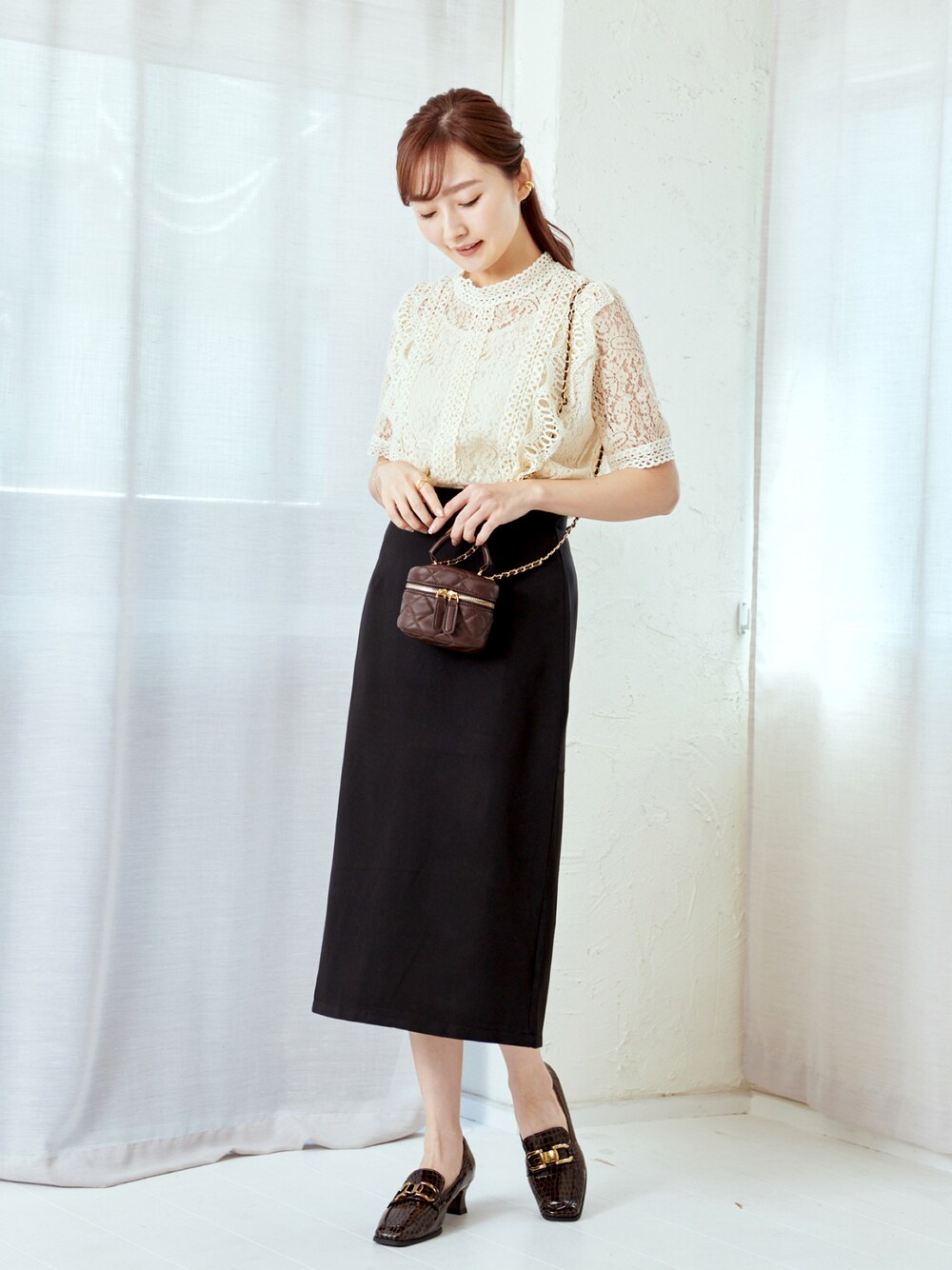 lamoaのショルダーバッグ「Lamoa/チェーンストラップ キルティング ミニショルダーバック」を使ったコーディネート