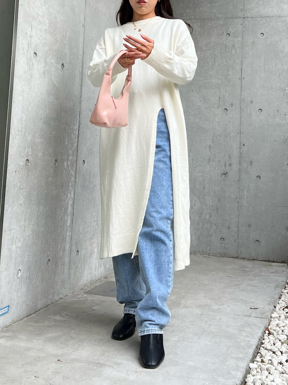 lamoaのワンピース「Lamoa/スリット ロング ニットワンピース」を使ったコーディネート