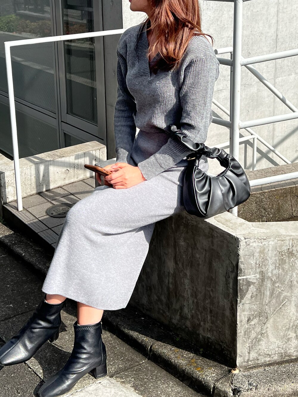 lamoaのニット/セーター「Lamoa/Vネック リブニット プルオーバー」を使ったコーディネート
