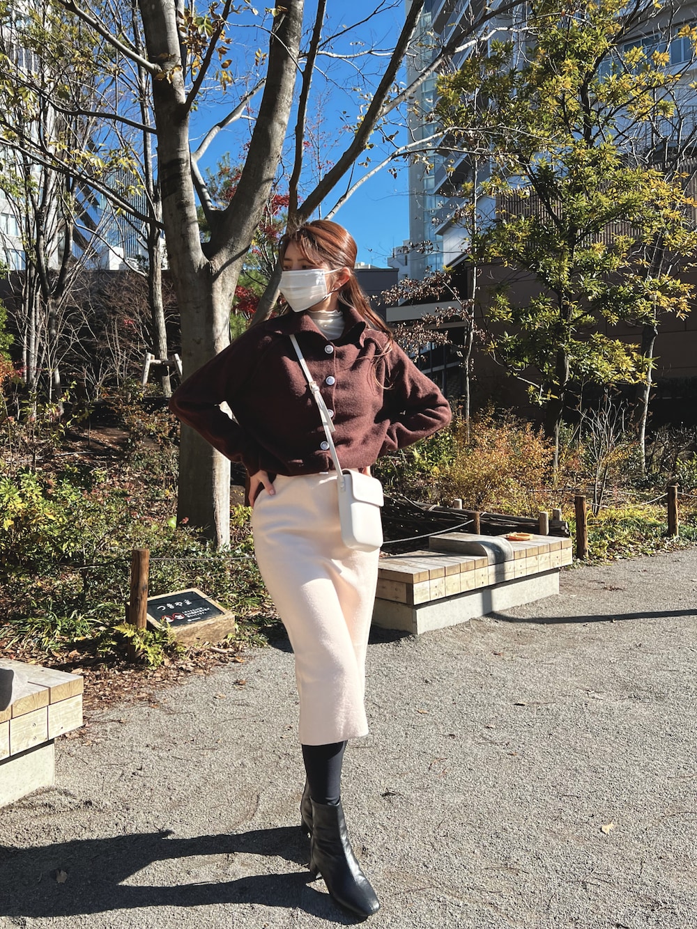 lamoaのニット/セーター「Lamoa/ルーズ ポロニット」を使ったコーディネート