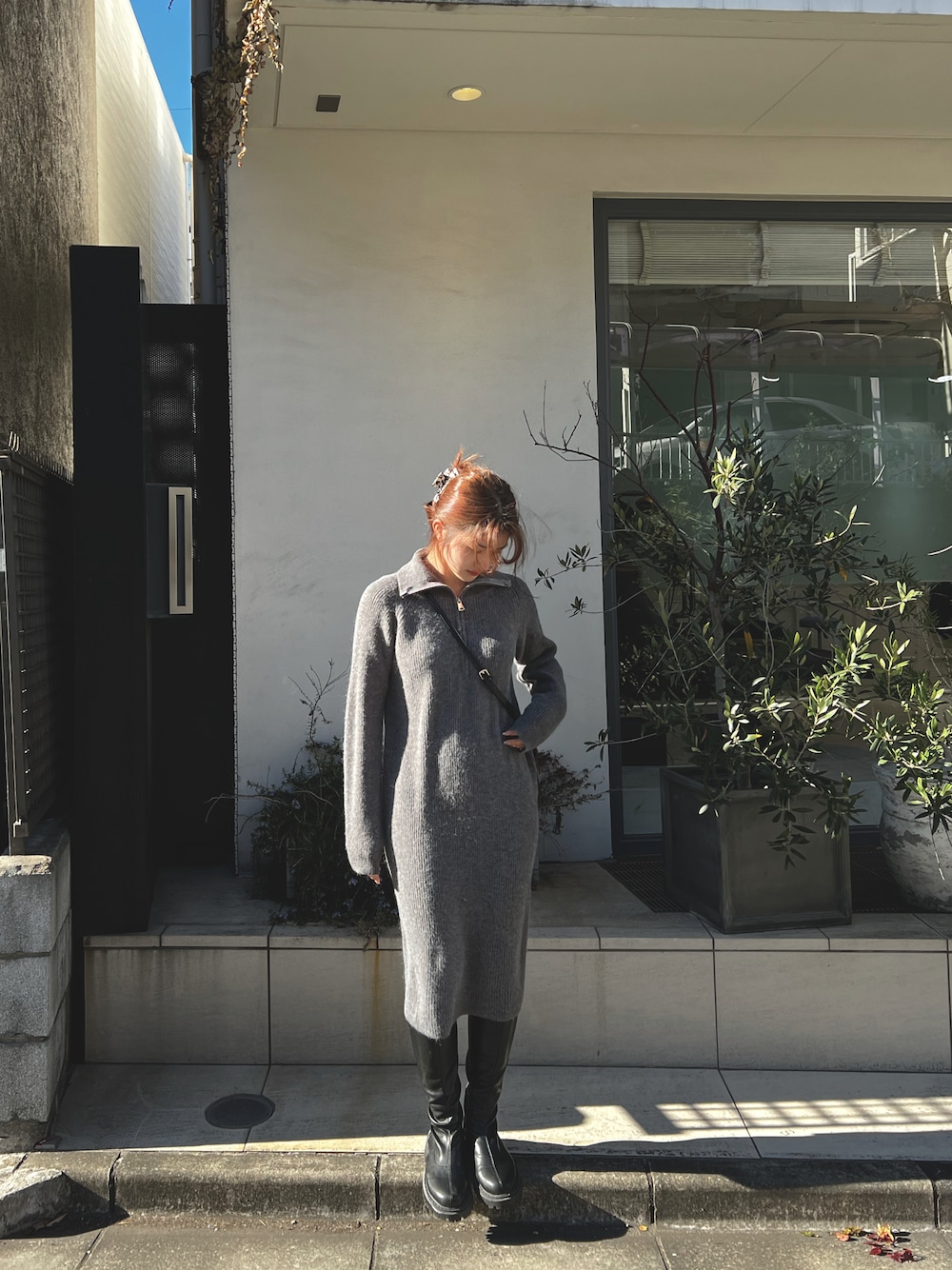 lamoaのワンピース「Lamoa/ハーフジップ ルーズ ニットワンピース」を使ったコーディネート