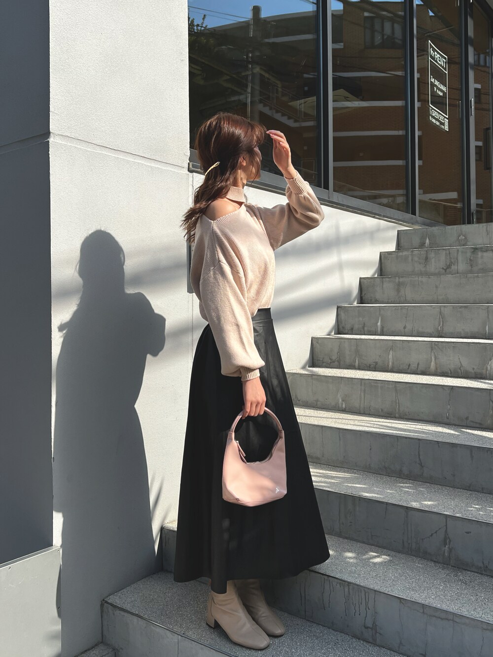 lamoaのニット/セーター「Lamoa/ショルダーカット ボリュームスリーブ ニット」を使ったコーディネート