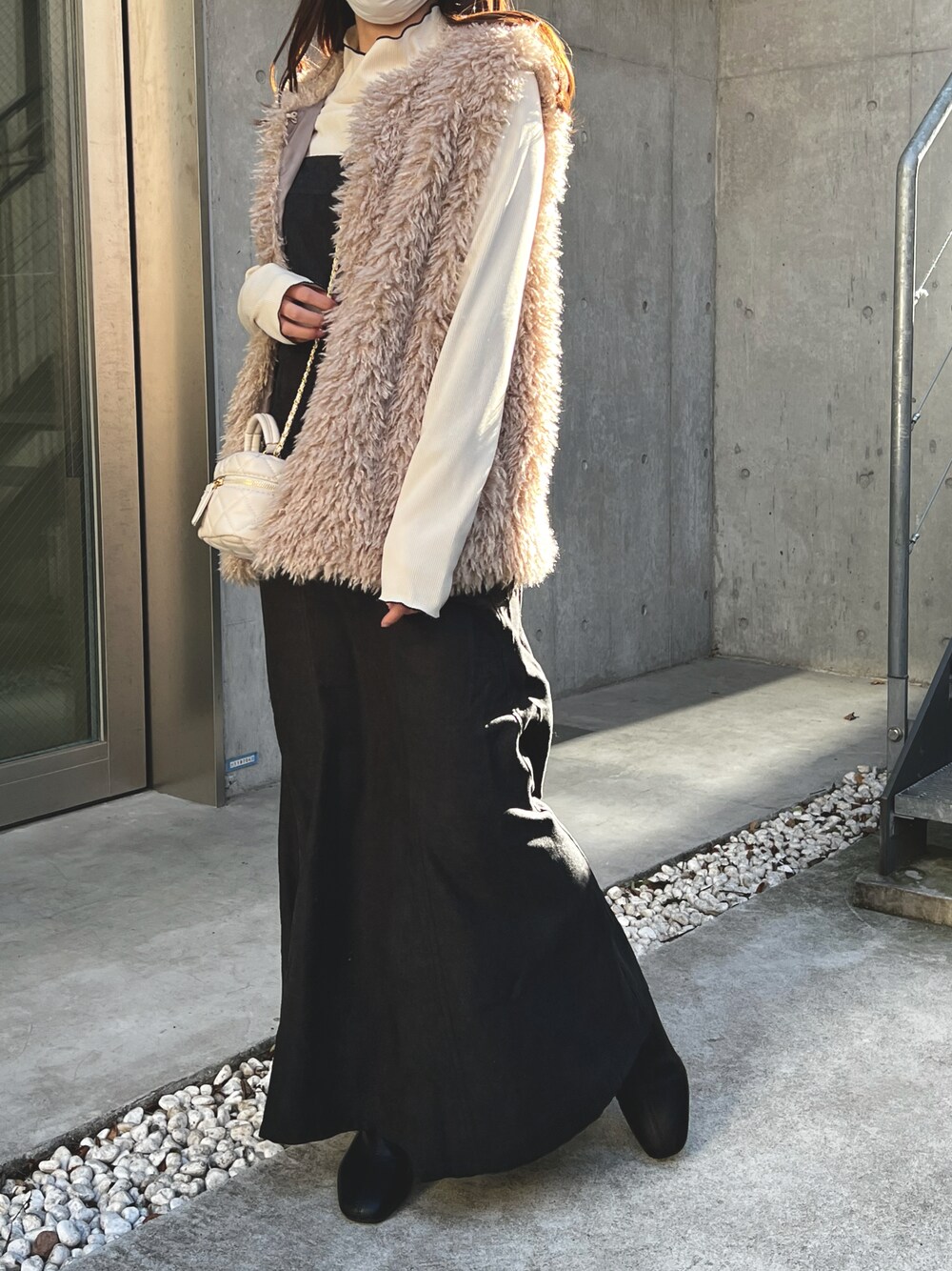 lamoaのベスト「Lamoa/ボリューム ファーベスト」を使ったコーディネート