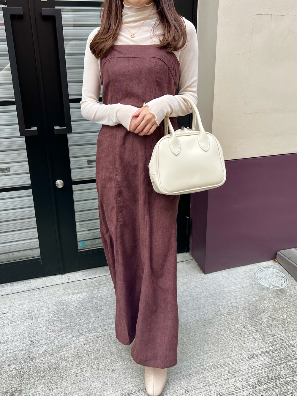 lamoaのボストンバッグ「Lamoa/2WAY スクエア ハンド ショルダー ボストンバッグ」を使ったコーディネート