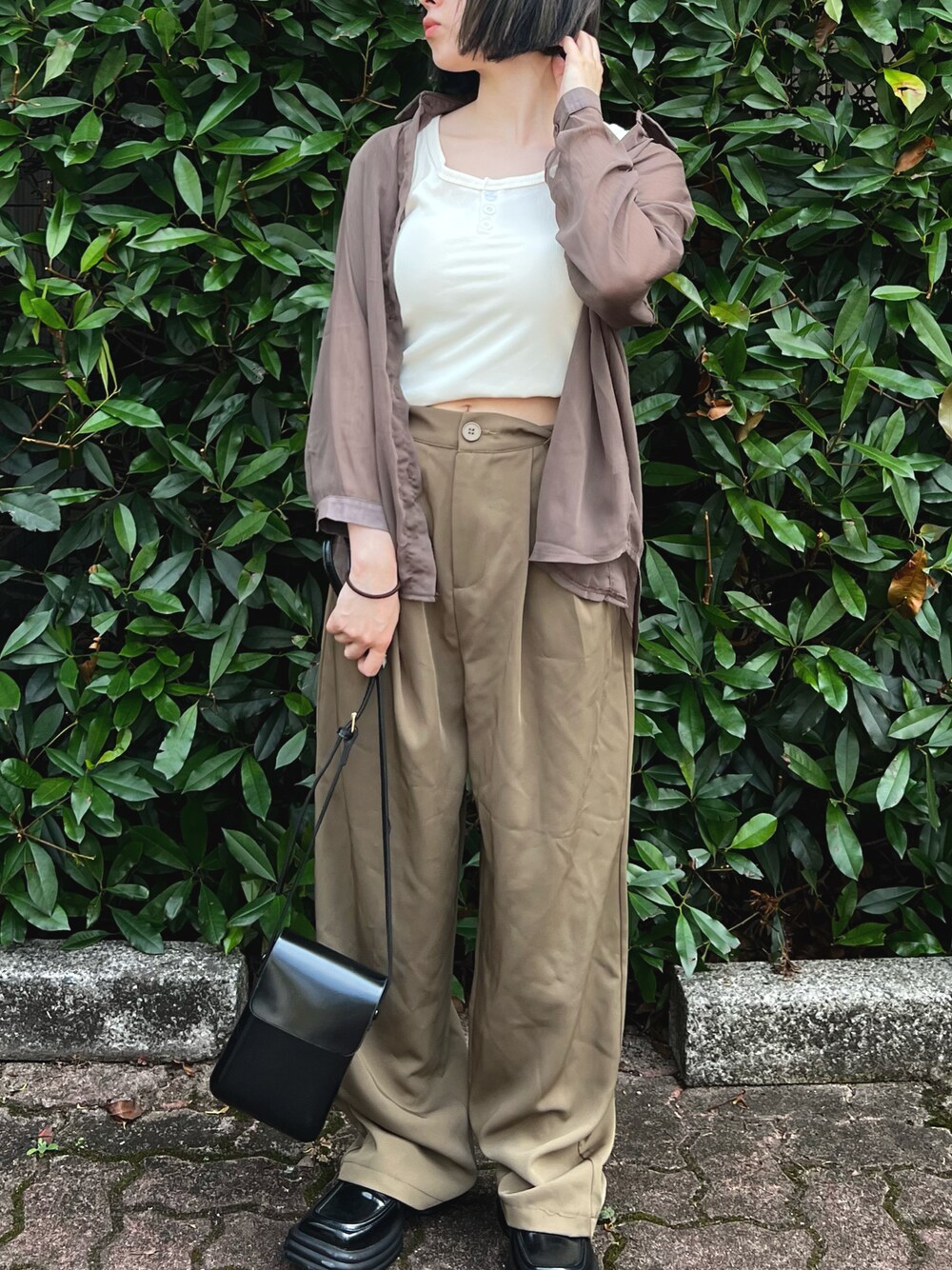 落ち着いたブラウンのシアーシャツで大人な夏コーデの完成🤎