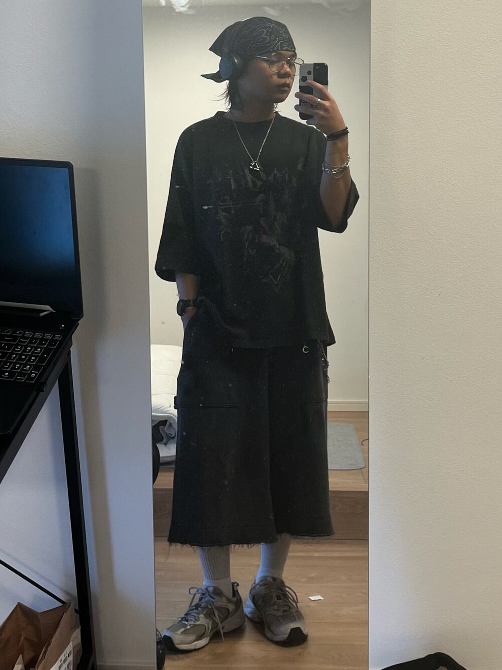 lanceeeのスウェットパンツ「【EPNK】Faded carpenter sweat shorts / フェイデッドカーペンタースウェットショーツ」を使ったコーディネート