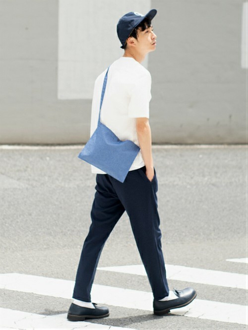 ネイビー×ホワイトのシンプルカジュアルコーデ☆ サコッシュをポイントにして爽やかな印象に。