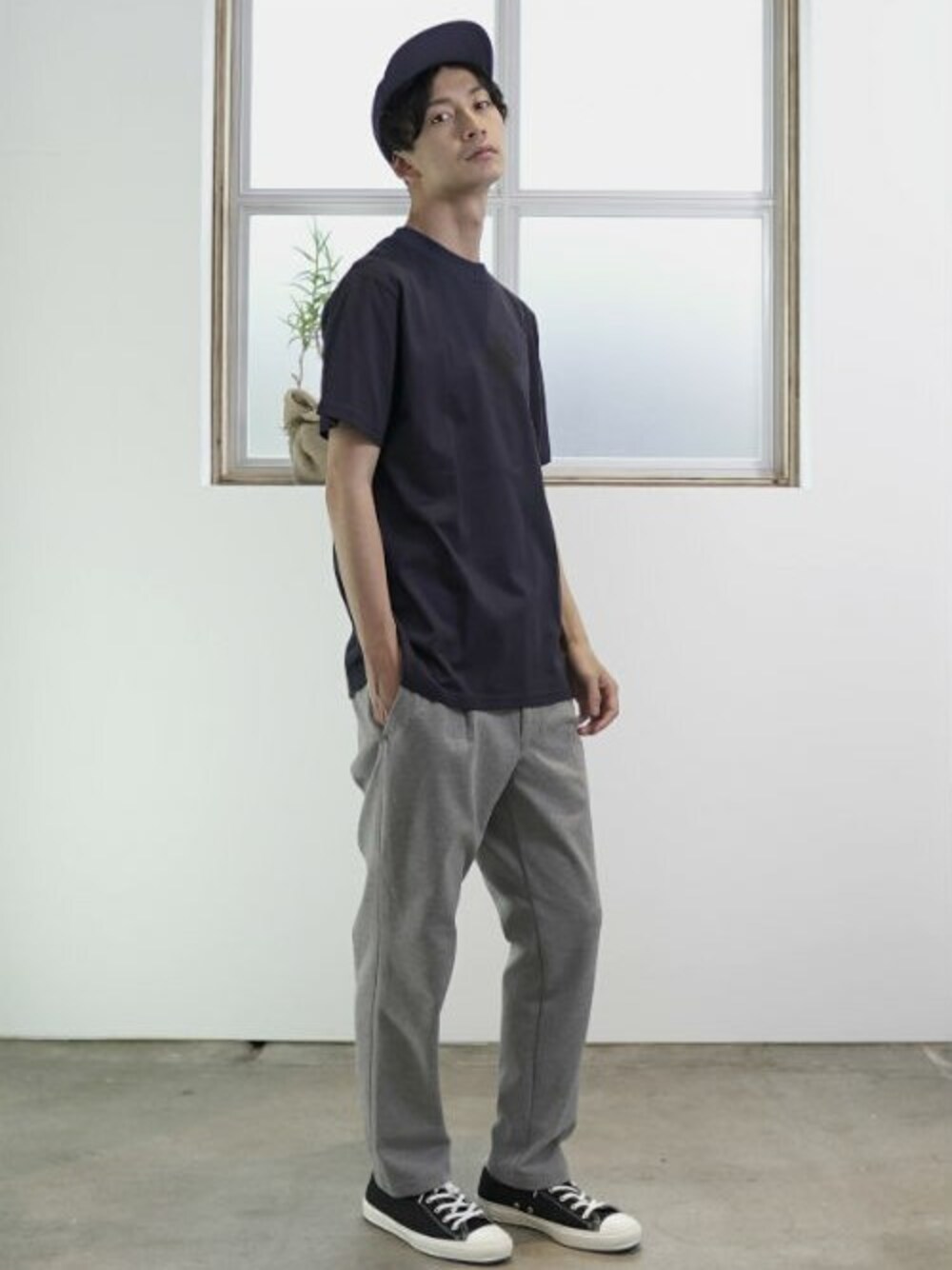 実は胸元に手裏剣がプリントされたTシャツです☆ ハイクルーネックで、清潔感のある一着。