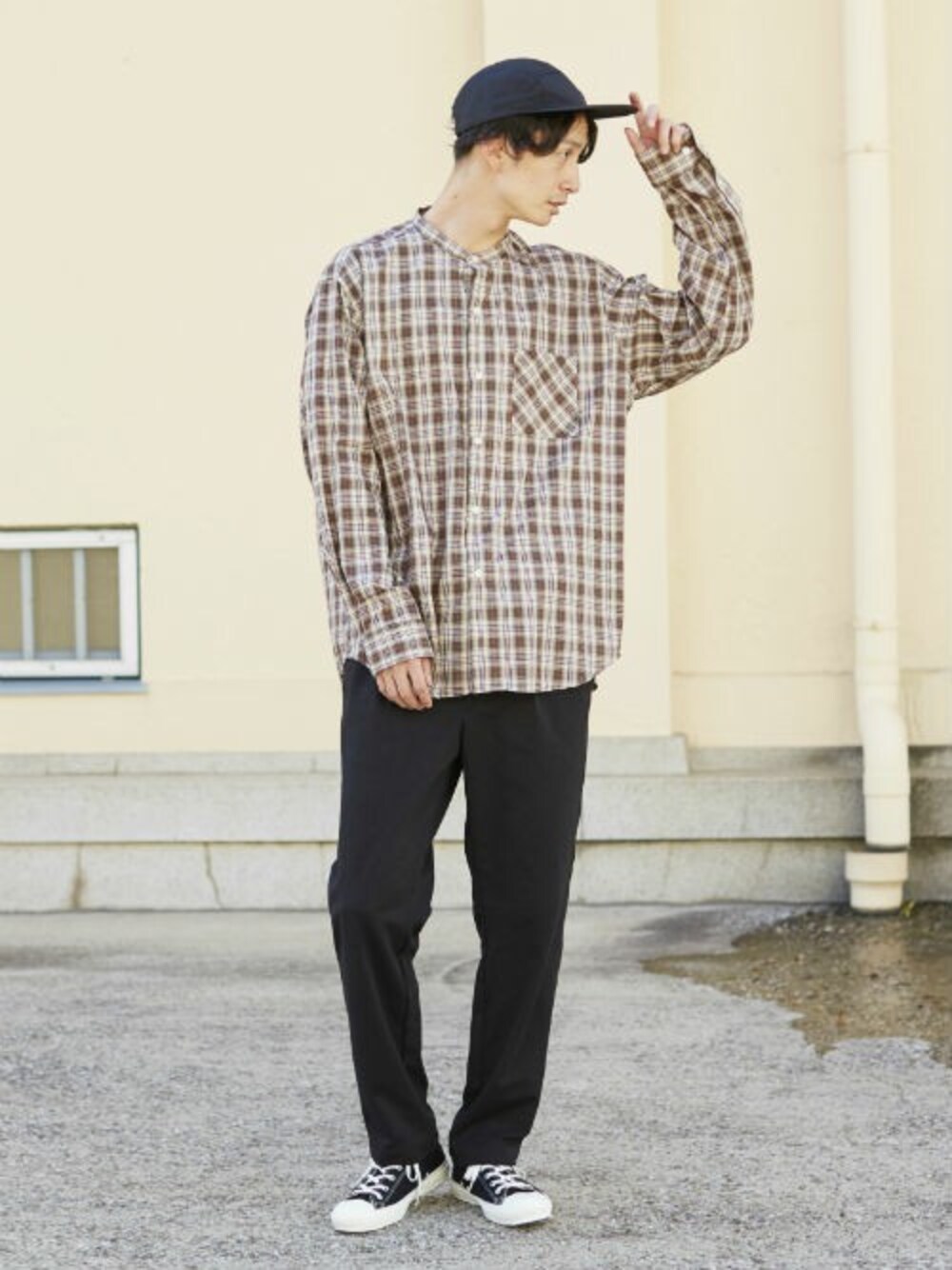 L&HARMONYのシャツ/ブラウス「[L&HARMONY / エルアンドハーモニー] レトロチェックルーズバンドカラーシャツ」を使ったコーディネート
