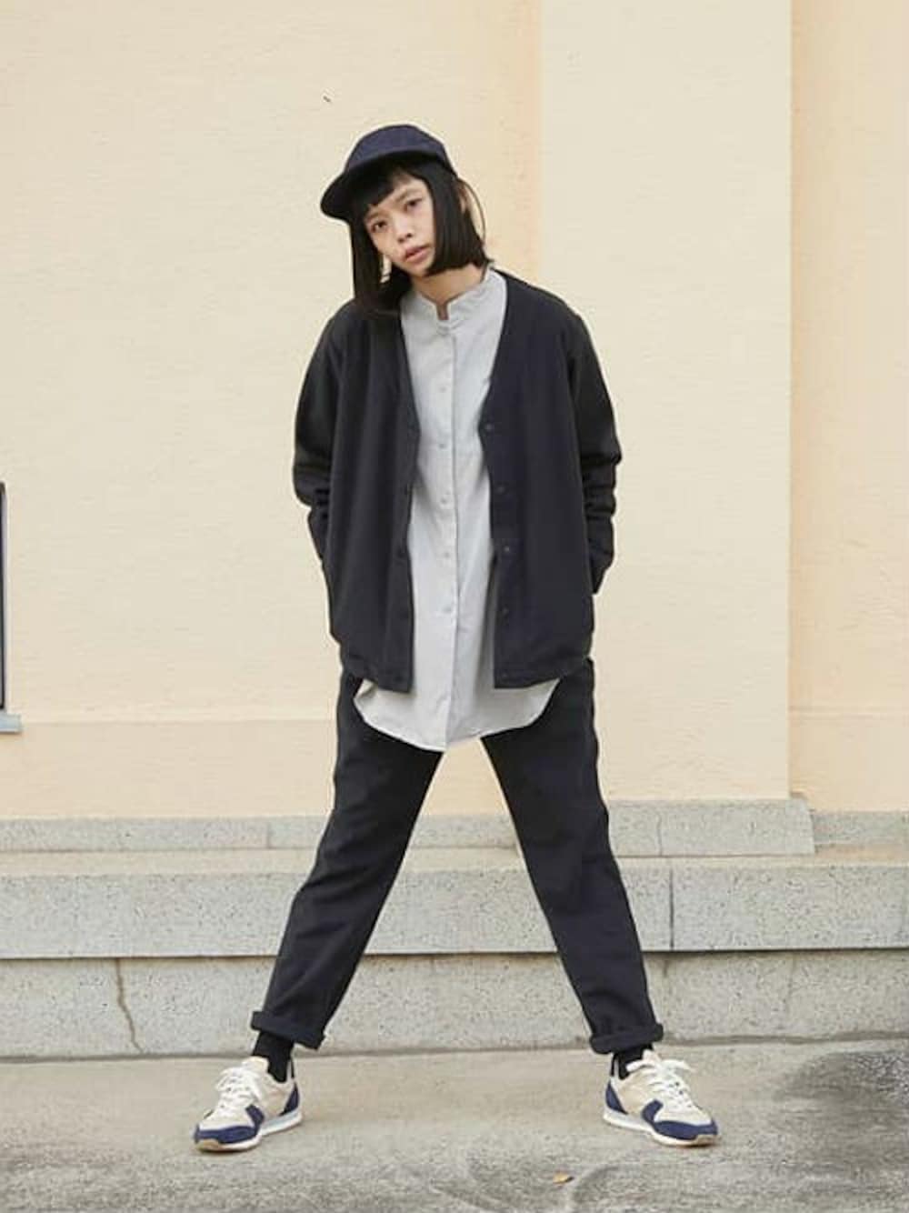 全体的にシンプルにセットアップでまとめたコーディネート。 カジュアルながらも清潔感のあるスタイリングです。