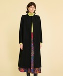 オールブラックコーデに、ブルーを差し色にしたコーディネートです。メルトンのなめらかな素材のコートで、Aラインやボタンが見えない仕様になっているのも高級感を演出してくれるポイントです。 適度にゆとりのあるアームホールで、スーツの上に着用されたい方にもおすすめです! バックスタイルには大きなスリットが入っており、足捌きもよくフレアなシルエットに動きが出ます。 フォーマルスタイルでも使えて、1枚持っておくと安心のアウターです!