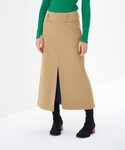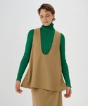 深めのUネックで首元がスッキリのベスト。 程よいAラインでアームホールもゆったりしているので、どんなトップスとレイヤードしてもごわつかず、長い季節着用いただけます。 同素材スカートは前後にスリットが入っており足捌き◎。 ベージュのカラーはとくに、スリットから見える配色がワンポイントに。