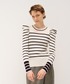 ボーダーとタックスリーブのMIXがLANVIN en Bleuらしいニットにカラースカートを合わせ遊びを効かせたコーデ。 ニットは程よいフィット感でウエストを綺麗に魅せてくれる一着。 スカートはシンプルなシルエットで着回しの効くアイテム!ボックスプリーツで動きが出るのもポイント。