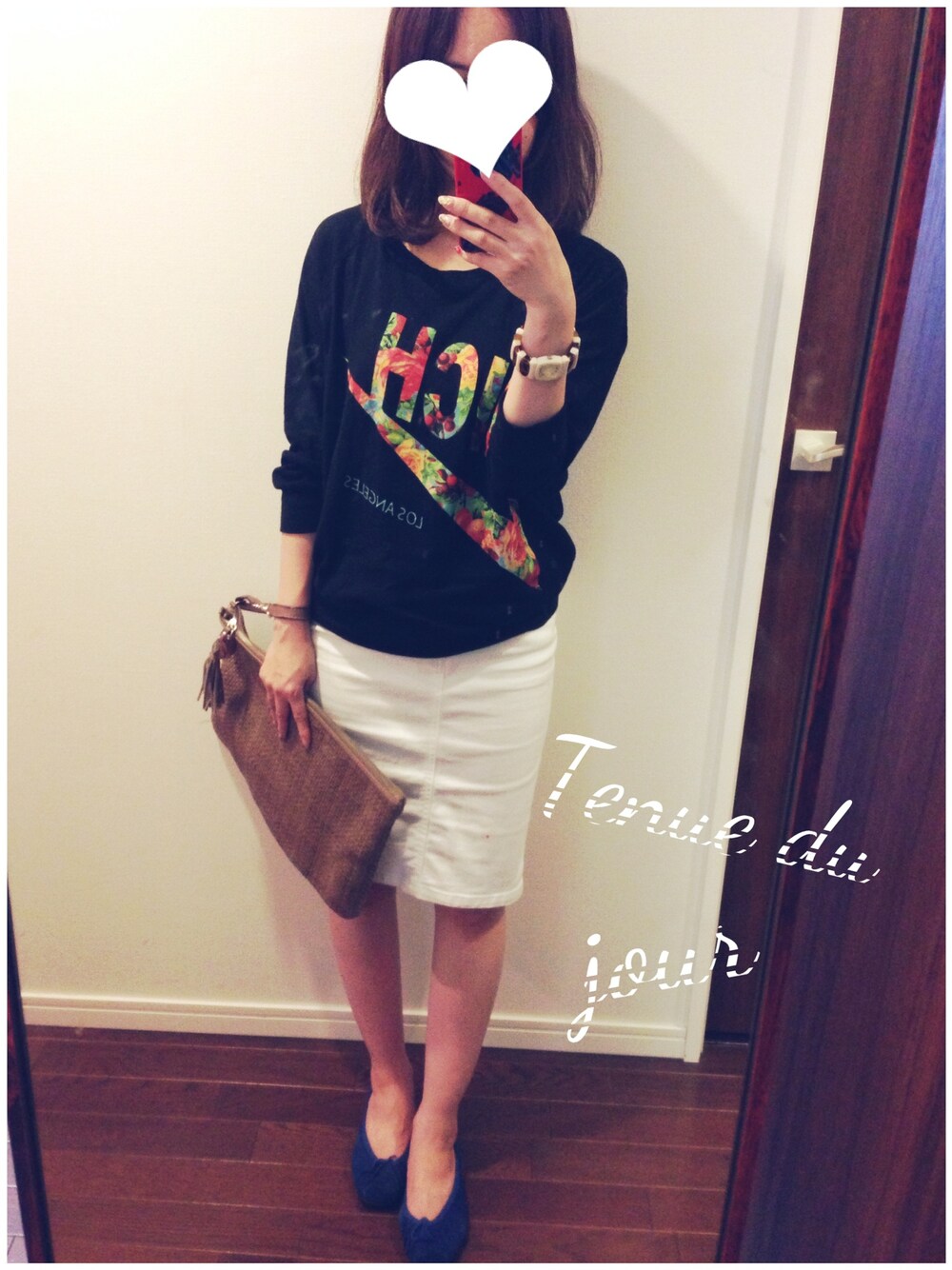 大きめサイズのスウェットにタイトスカートを合わせて、バランスを取りました。 スウェットのロゴの文字がトロピカル柄になってるので、黒でも重たすぎない☺︎ 足元はバレエシューズでフェミニンに♪