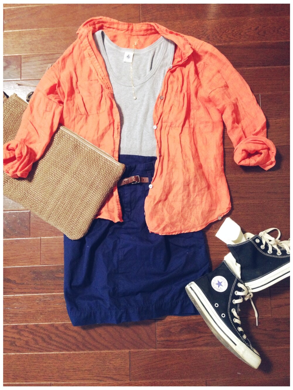 タンクトップ/Petit Bateau スカート/Journal Standard スニーカー/CONVERSE 柄物なしのシンプルスタイル☺︎
