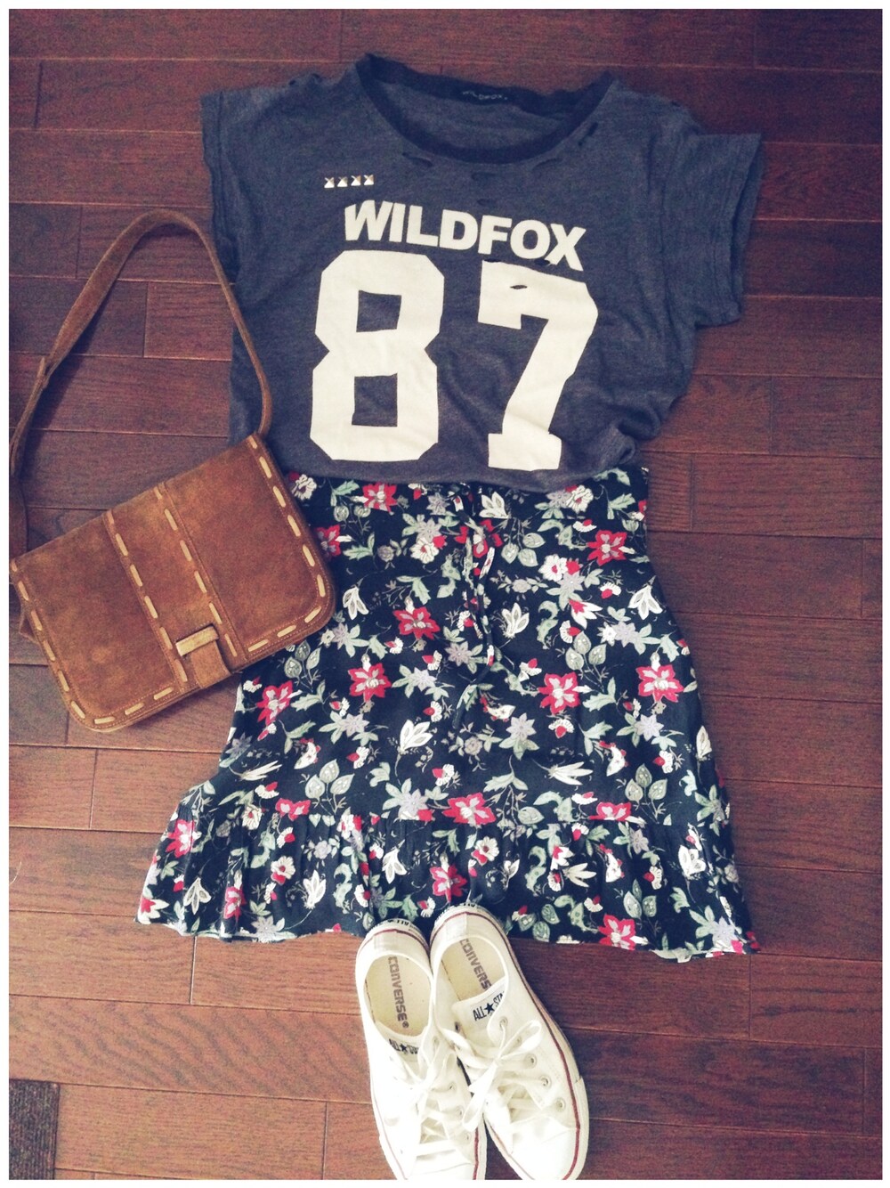 Tシャツ/Wildfox Couture スカート/Comptoir des Cotonniers ダメージTシャツに花柄スカートを合わせてフェミニンに❤︎ このコトニエの花柄のスカートは長さもラインも本当キレイでお気に入り☺︎フランスのファッションデザインはやっぱり女性をとても美しく見せてくれます♪