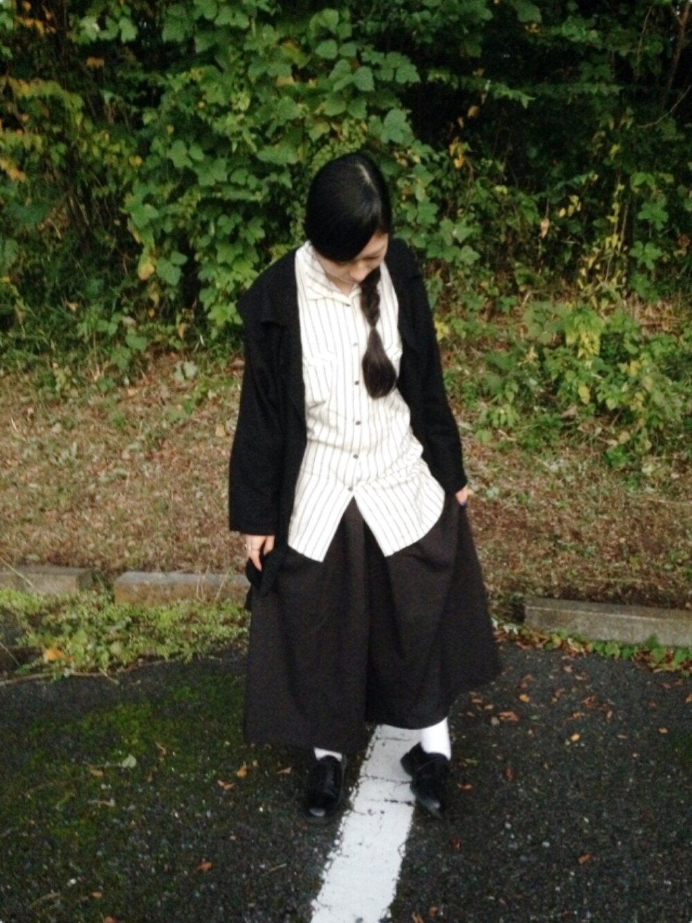 久々のアップになりましたー もうあっという間に11月ですね😀 気温も低くなってきてそろそろ冬物着れますね😊 相変わらずのモノトーンコーデです✨ イメージとしてはアダムスファミリーのウェンズデーとモード系合わせた感じですw