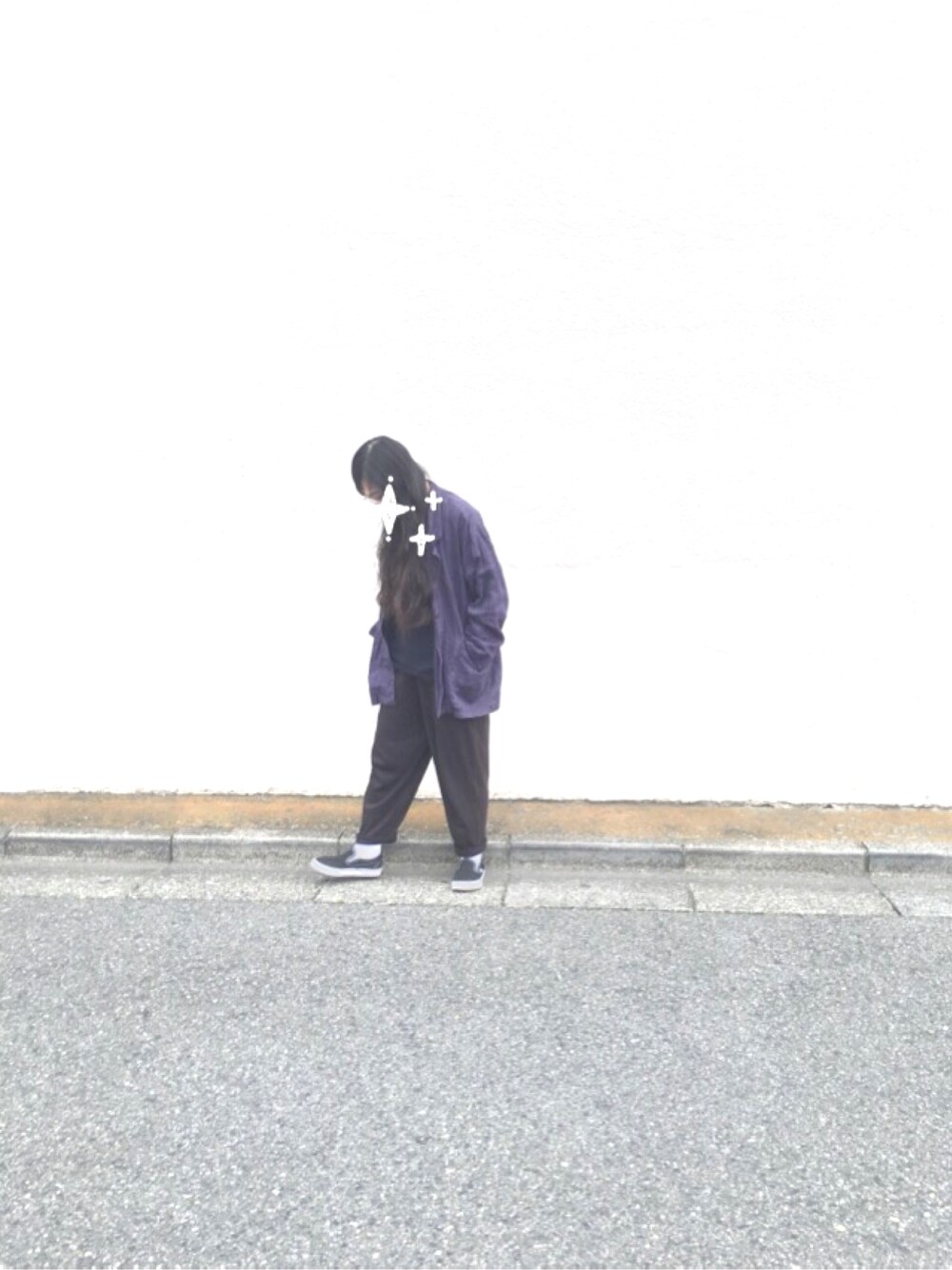 こんにちは〜✨ 今回も色暗めコーデですw ブラックネイビーの組み合わせがマイブームです😊 夏なのでインナーは写真でみえないですが、ちらっとホワイトみえるようにきてます〜