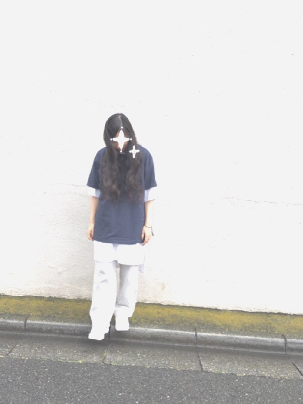 こんにちは〜 今回は最近マイブームのホワイトとネイビーコーデ✨ 組み合わせ方はメンズ風で着てみました〜😊