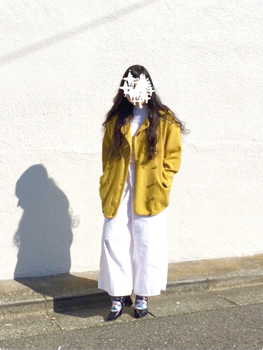 こんばんは〜 あったかくなってきたので、セーターをアウター代わりに着てみました〜✨ 中はシンプルにハイネックTシャツに白のワイドパンツ〜 ネイルをネイビーにしたので、靴下とカラフル感で合わせてみました〜