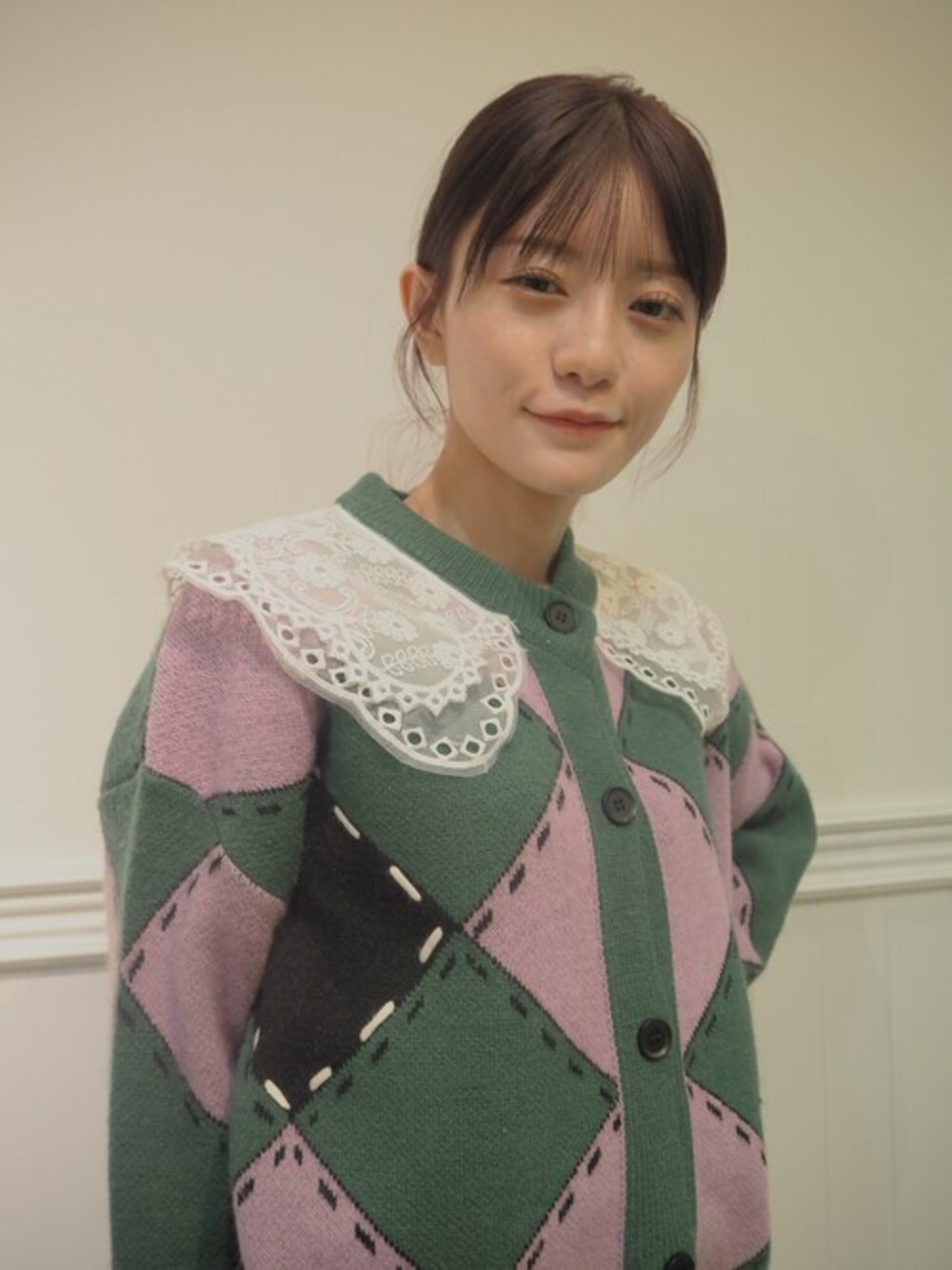 petit♡petitのカーディガン/ボレロ「Lace Collar Argyle Cardigan レースカラーアーガイルカーディガン」を使ったコーディネート