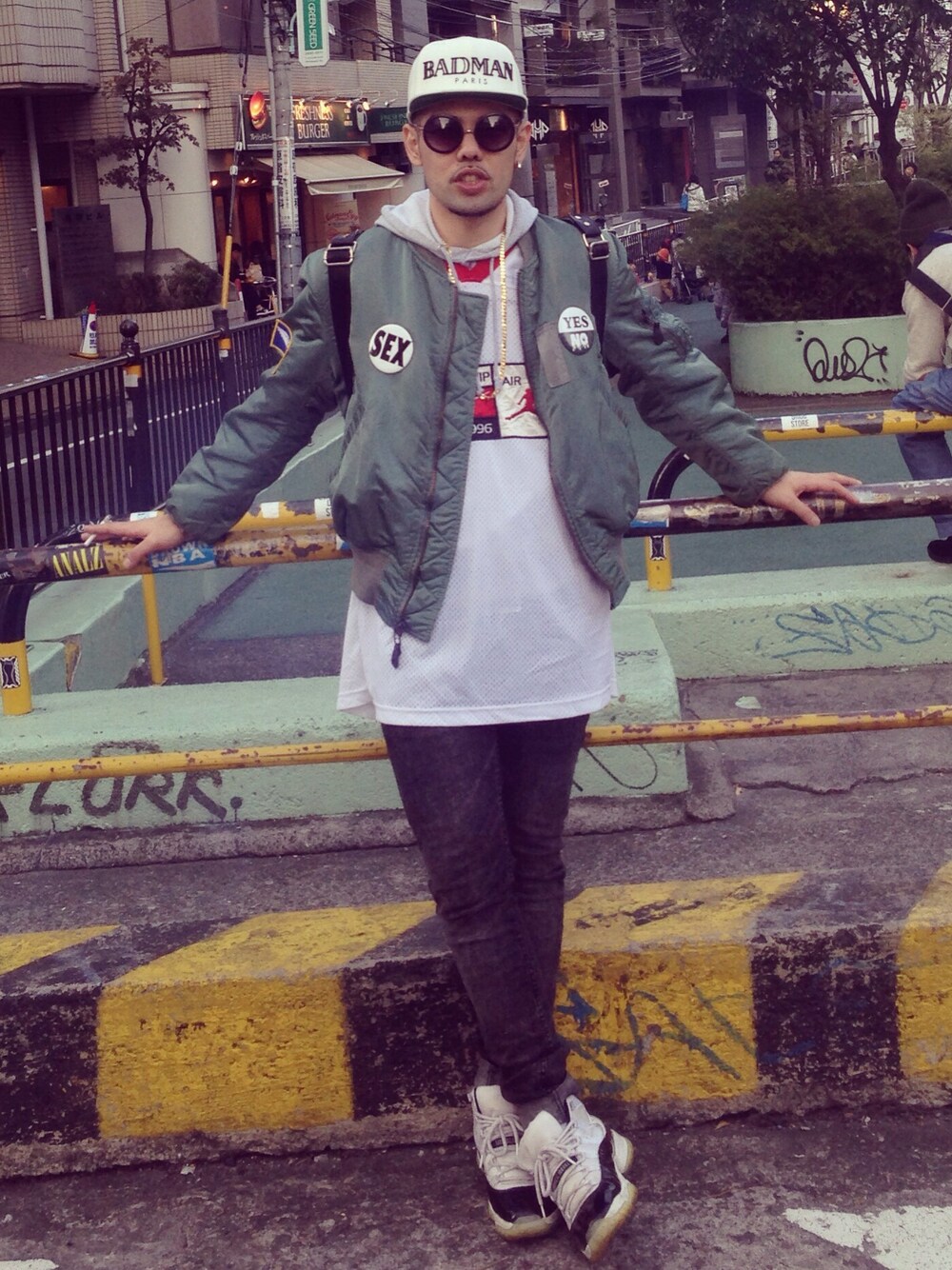 去年の今頃のやーつPart2!!! このころは良くjordanとma-1、AZSのbadman parisを組み合わせてきてたやーつ。。。 基本トップスとアウターは古着固めです。 ポイントはma-1に付けてるバッチ sex!!! yes.no!!!