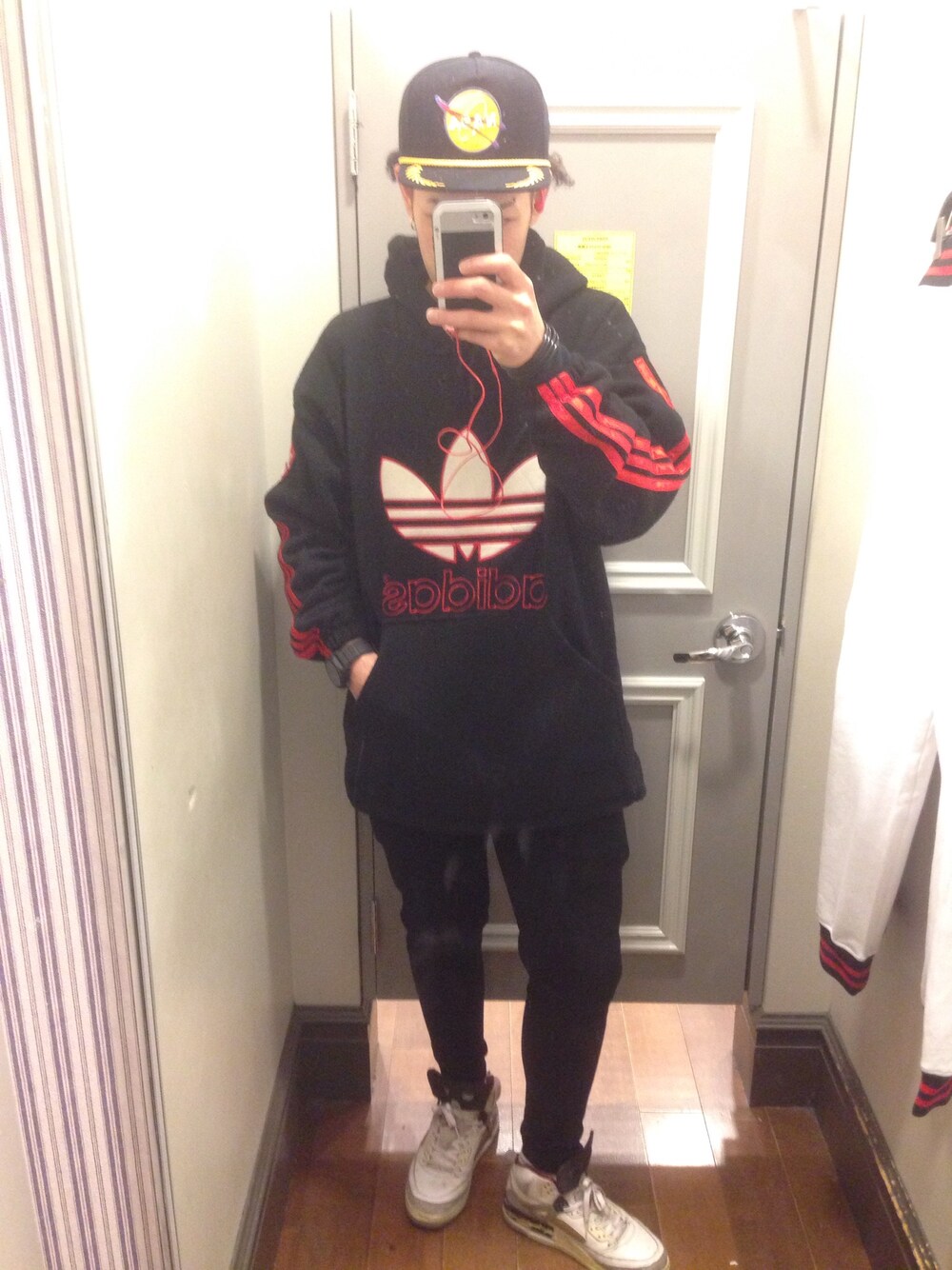 連続投稿なう!!! 3日前ぐらいのコーデ! トップスのadidasは 古着屋で1500円と格安で GETとしたアイテム 帽子は見えにくいですが Foreverで買った帽子を リメイクしてNASAの ワッペンを貼った 世界に一つだけの オリジナルなやーつ!!! 欲しい方はご連絡を あげないけどねw