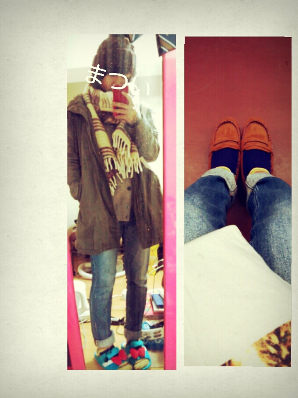 tops:heather cardigan:ユニクロ bottoms:Earth music & Ecology Outer:THE EMPORIUM 靴:Holiday Apartment 帽子:GLOBAL WORK かばん:Used マフラー:BEAMS BOY