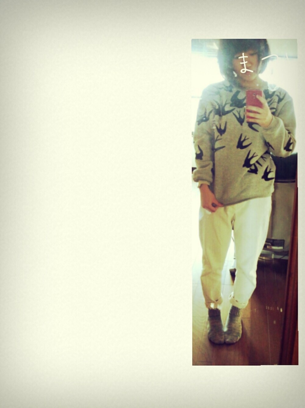 tops:mumokuteki bottoms:Used またニット帽~! 赤いニット帽に写真のブローチつけました。 あけましておめでとうございます。